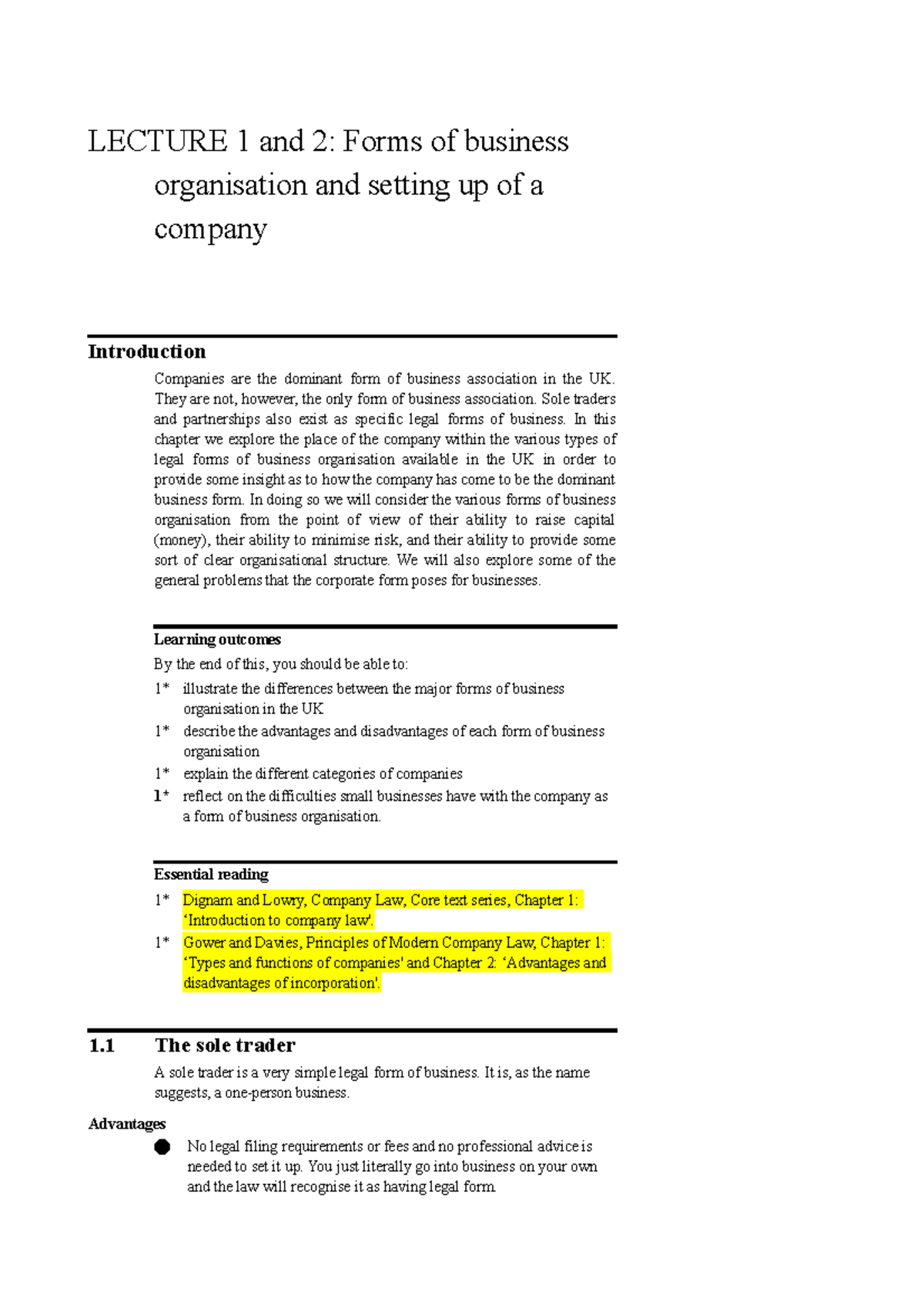 1 2 Forms Of Business Organisation And Setting Up Of A Company Studocu