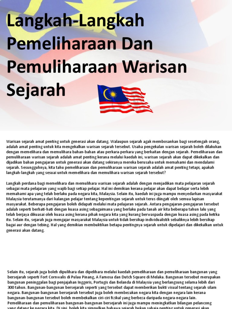 Langkah Mengekalkan Sejarah Dan Warisan Pdf